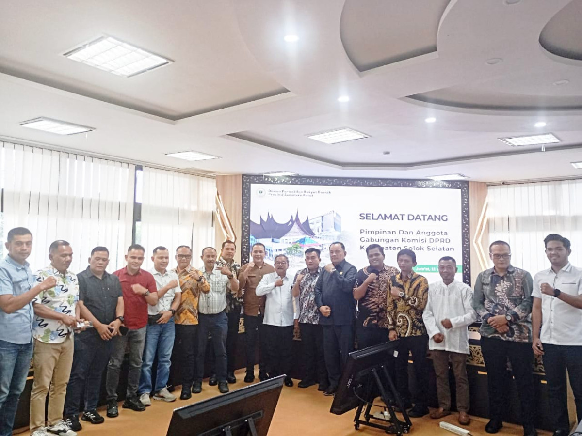 Journaling.jd, Sumbar – Dewan Perwakilan Rakyat Daerah (DPRD) Provinsi Sumatera Barat menerima kunjungan kerja pimpinan dan anggota gabungan komisi DPRD Kabupaten Solok Selatan, Jumat (11/7/2025) di ruang rapat khusus 1 kantor DPRD Sumbar.