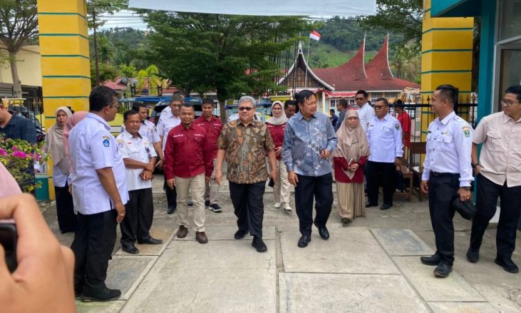 Sumbar – Ketua DPRD Sumbar Muhidi bersama Kepala Dinas Pendidikan Sumbar Habibul Fuadi, meninjau pelaksanaan Latihan Dasar Kepemimpinan (LDK) OSIS di SMK Negeri 1 Painan, Senin (9/9).