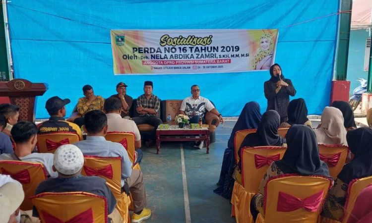 Limapuluh Kota – Anggota Dewan Perwakilan Rakyat Daerah (DPRD) Provinsi Sumatera Barat (Sumbar) Komisi III drh. Nela Abdika Zamri, menggelar kegiatan reses sekaligus sosialisasi Peraturan Daerah (Perda) Provinsi Sumatera Barat Nomor 16 Tahun 2019 tentang Pemberdayaan dan Perlindungan Koperasi dan Usaha Kecil. Acara itu berlangsung di Nagari Situjuah Batua, Kecamatan Situjuah Limo Nagari, Kabupaten Limapuluh Kota, Minggu (26/10), dihadiri kurang lebih 200 orang konstituen dari dua nagari, yaitu Situjuah Batua dan Situjuah Banda Dalam.