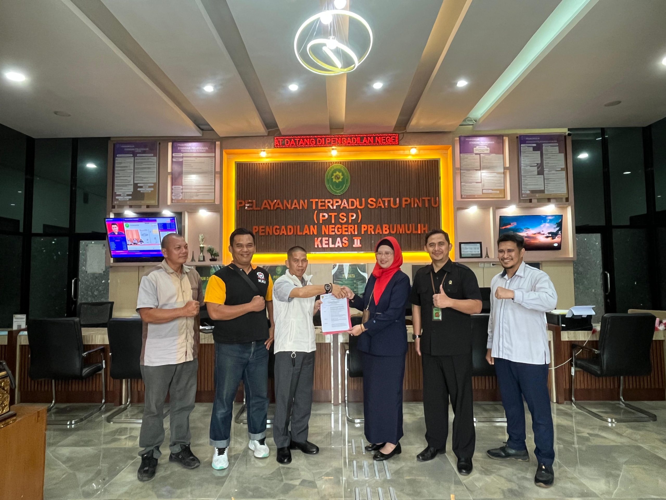 PRABUMULIH— Federasi Olahraga Karate-Do Indonesia (FORKI) Kota Prabumulih melakukan audensi dengan Ketua Pengadilan Negeri Kota Prabumulih, R.A. Asriningrum Kusumawardhani, S.H., M.H.Didampingi Waka Sugiri wiryandono, S.H., M.Hum dan Sekertaris M. Kamil Setiadi ST.Senin (13/10/2025). Kegiatan tersebut berlangsung di kantor Pengadilan Negeri yang berlokasi di Jalan Sudirman, Keluraha Sindur, Kecamatan Cambai, Kota Prabumulih.