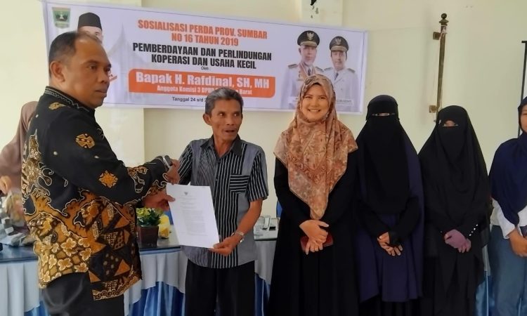 Agam – Anggota Komisi III DPRD Sumatera Barat, H. Rafdinal, menggelar Sosialisasi Peraturan Daerah (Perda) Nomor 16 Tahun 2019 tentang Pemberdayaan dan Perlindungan Koperasi serta Usaha Kecil di Aula Camat Banuhampu, Kabupaten Agam, Sabtu (25/10/2025). Kegiatan ini bertujuan meningkatkan pemahaman pelaku usaha terhadap kebijakan daerah dan memperkuat daya saing ekonomi masyarakat