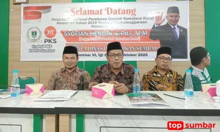 Sijunjung – Anggota DPRD Provinsi Sumatera Barat (Sumbar) Syofian Hendri, S.Pd.I, MM melaksanakan sosialisasi Perda Sumbar Nomor 02 Tahun 2019 tentang Penyelenggaraan Pendidikan di Muaro Sijunjung, Jumat (24/10/2025). Kegiatan ini bertujuan meningkatkan pemahaman masyarakat terhadap kebijakan daerah di sektor pendidikan agar pelaksanaannya berjalan maksimal.